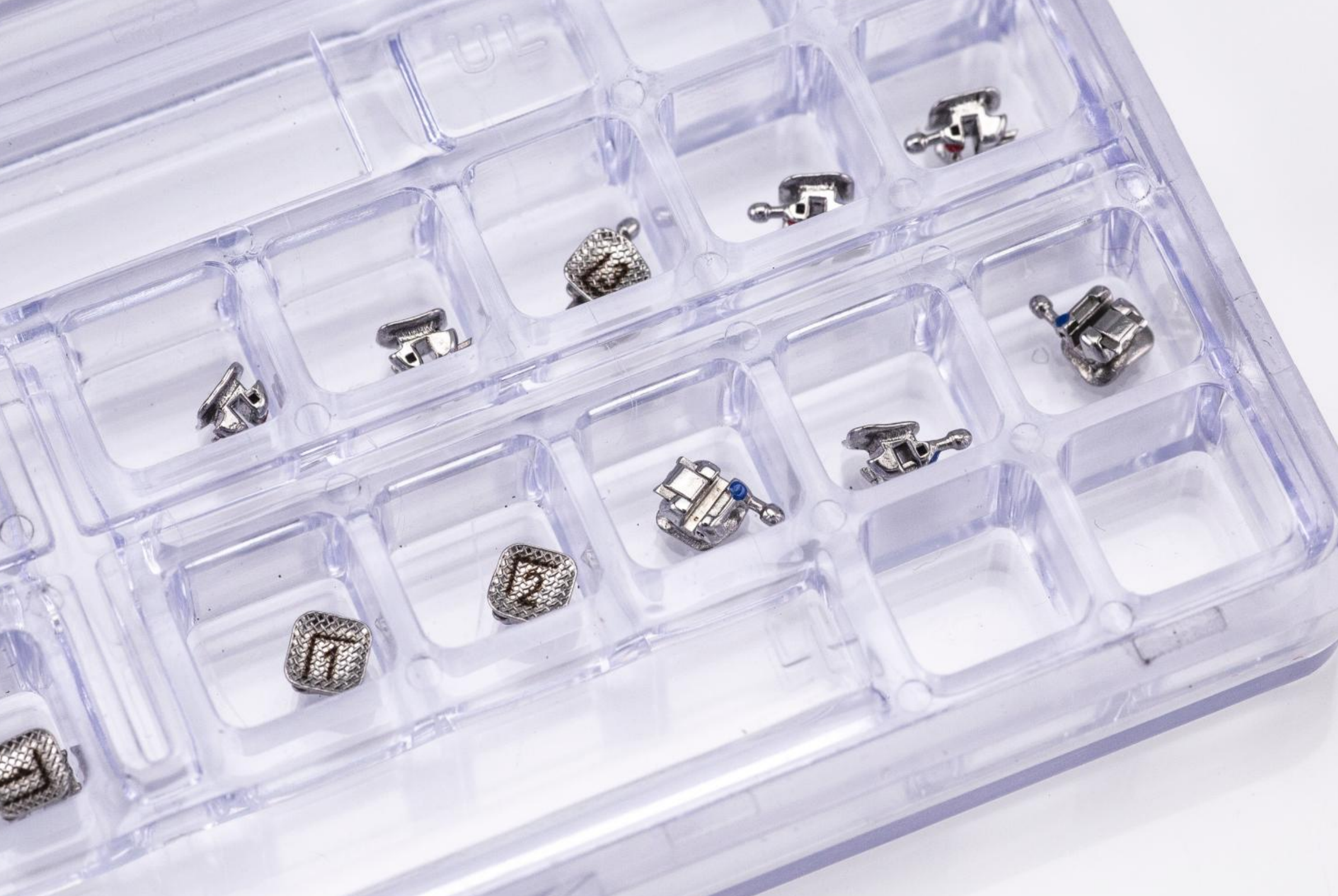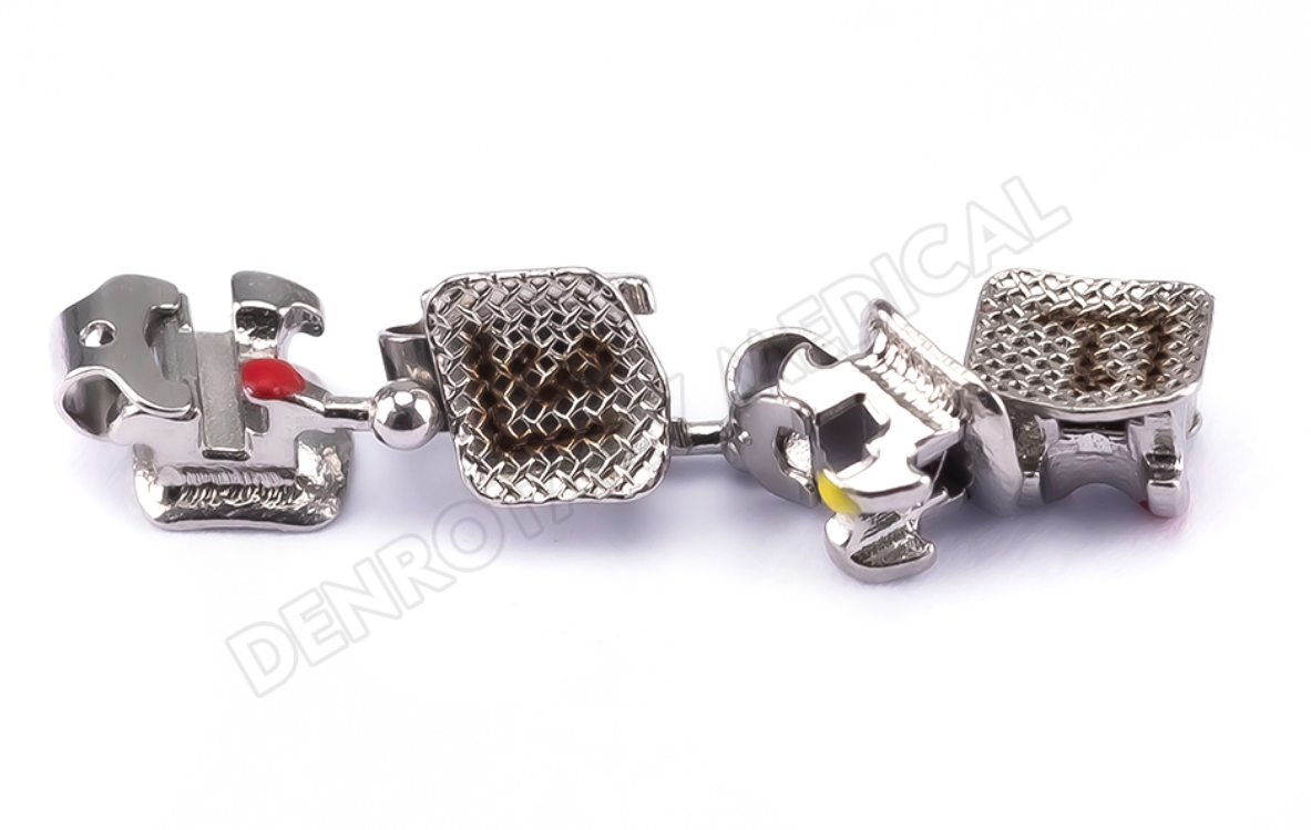 Traditional metal braces use brackets, wires, and elastic bands. The orthodontist attaches a small bracket to each tooth. A thin wire connects all the brackets. Small elastic bands, called ligatures, hold the wire in place.